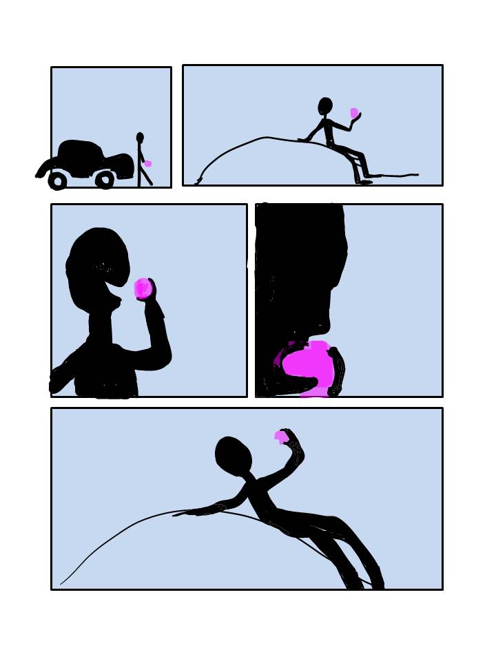 I delved into the plum poem/comic a bit more then I should have probably. The man with the plums seemed to be on a mission rather then just satisified eating a plum or two out of the ice box. I rather enjoyed feeling left hanging at the end of the poem, and I believe that the comic 100% did that for me.. 🙂 now its like im writing the ending.