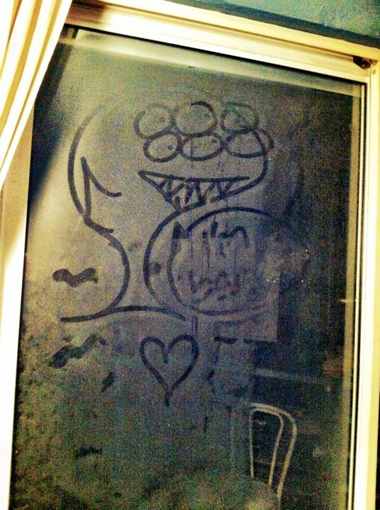 The rain washed away our previous chalk palimpsest.