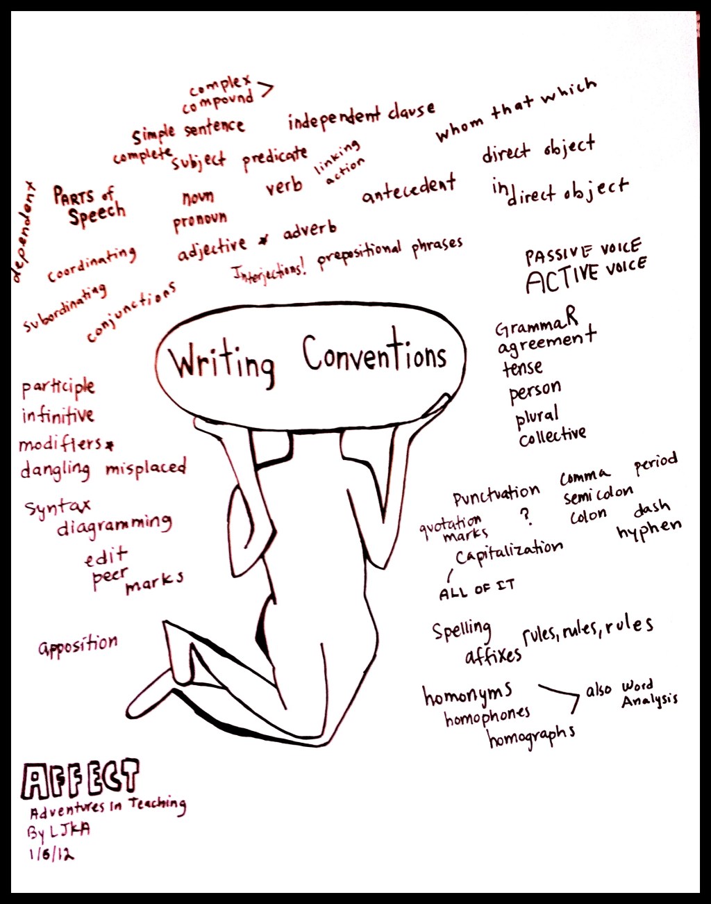 Writing conventions: when words travel from all over the world to gather at a large hotel in order to network and discuss possible team ups for sentences. There are also vendors who hand out free samples of punctuation.