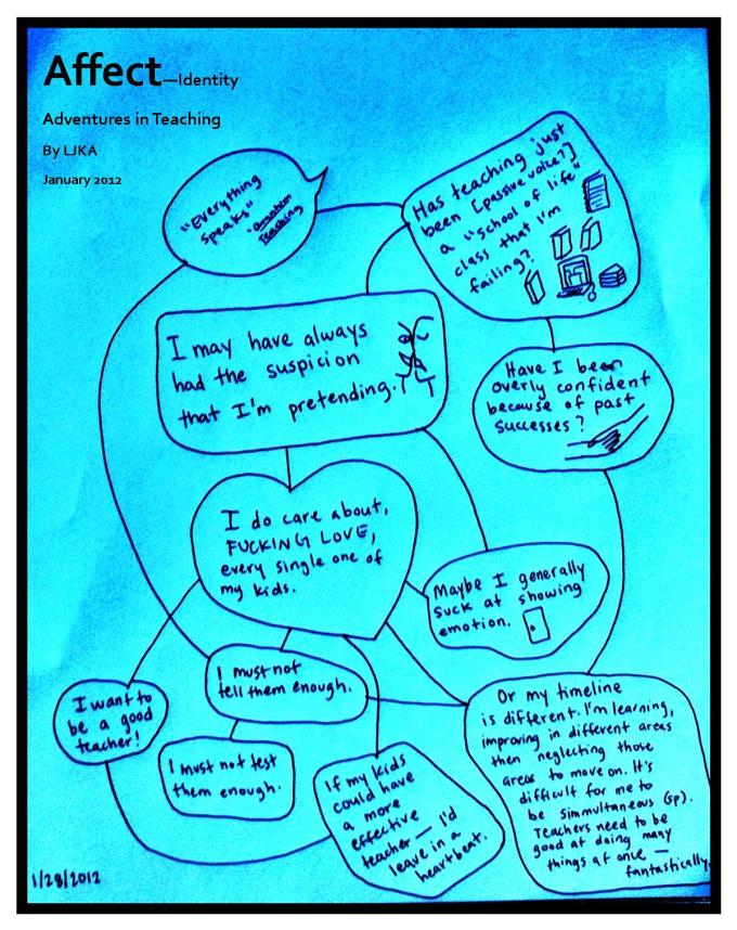 I noticed that recently the only positive feedback I was receiving from my instructional leader [at my school, I teach 7th grade English in Sylmar] was about my amazing ability to REFLECT on the areas I needed to improve. This has been an incredibly wearing strength of mine for the past two years. Usually, I’m doing some things right, as well. The administration’s attitude seemed to have shifted.