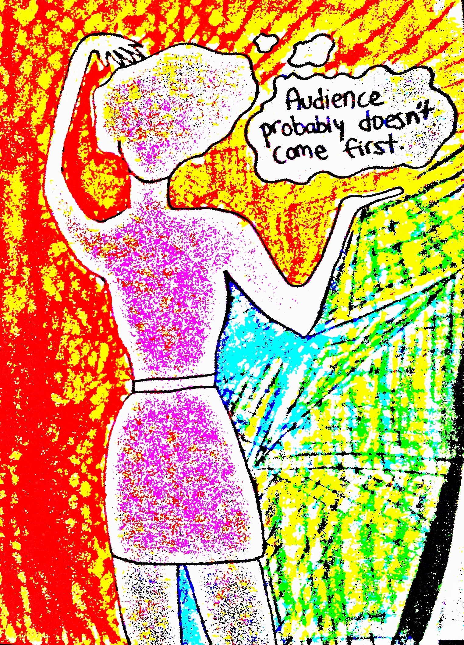 I’d like to see that in flow chart form: artist–>idea–>audience etc
