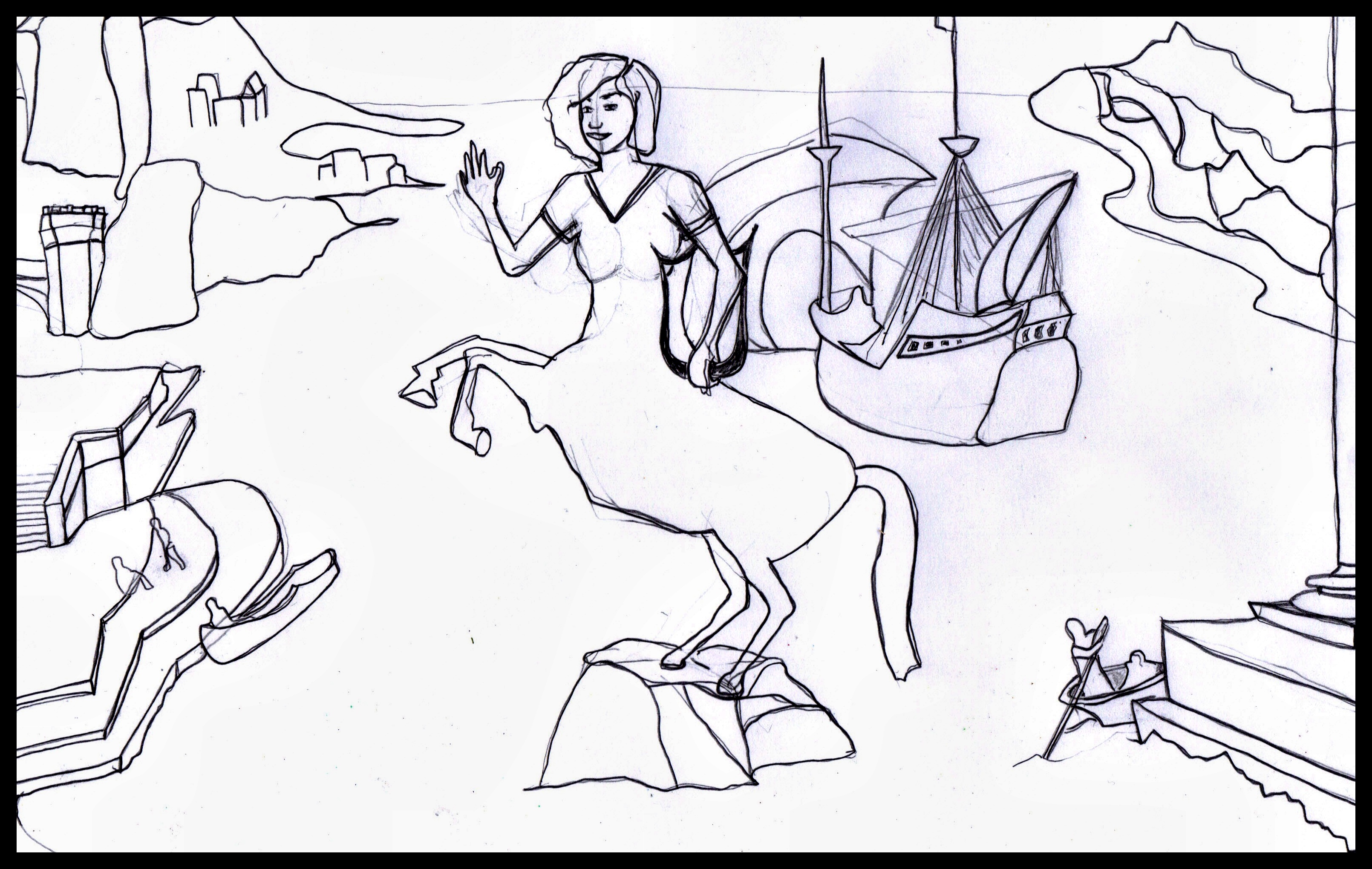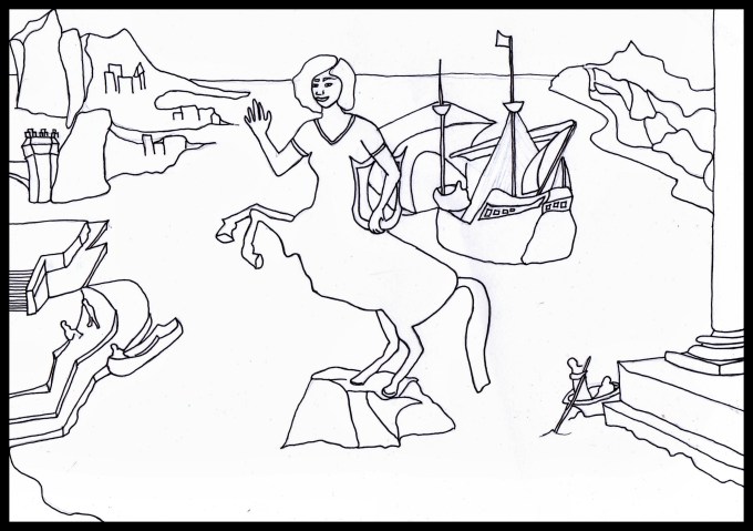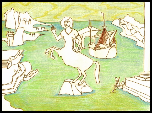 The land in the background should be a bit darker, and I should have included some trees somewhere, but I figure this is a start for the prompt, “draw a mythical creature,” which is day 3 of my 30 day drawing challenge. Now that’s a long sentence. I also need to work on using the colored pencils more consistently when I shade.