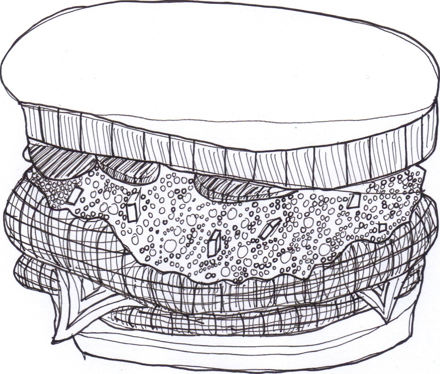 This is the beginning or the end of a belated Fathers’ Day drawing for my dad (is that redundant?). I initially wanted to make a sandwich house where all of the ingredients of the sandwich had little rooms and personalities. I showed my dad a draft of the drawing and asked him what ingredients he’d want in a sandwich. This basically turned into a conversation about how much we all wanted Tommy’s Burger (though we say “Tommy Burgers”). For the final draft, I started with pen and then colored the image with Photoshop (which I haven’t had in a year, so I’m still trying to figure it out). I don’t know if I should embrace the low brow aesthetic of this drawing and have the burger glowing somehow. Or maybe it’s more like pop art. Hmm The final image seems like such a departure from the caricature of a sandwich that I started with. Which would my dad rather look at?