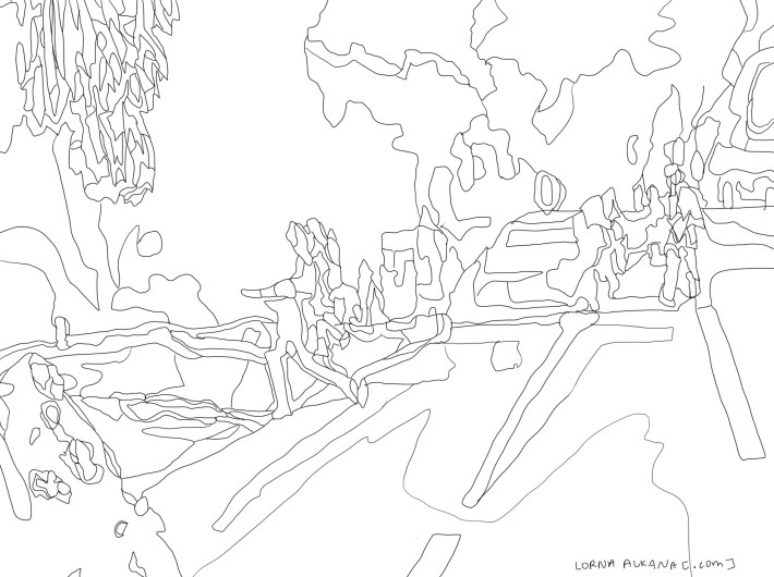 Micheltorena Street splits at Sunset. This is one of the sides. I let this image be more impressionistic than my other drawings.