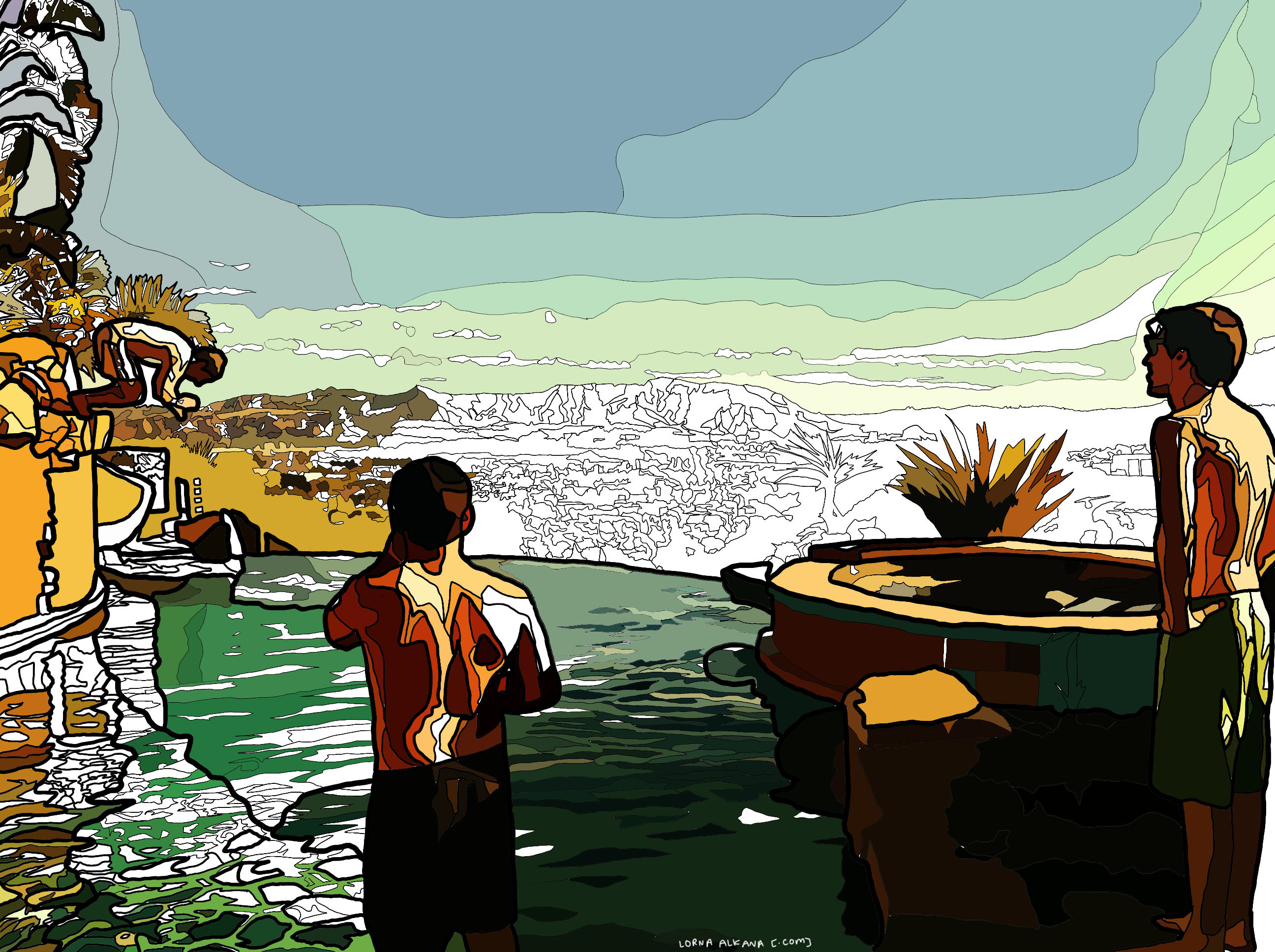 Swimming pools make me think of David Hockney. I should have reviewed some of his art before I started this drawing. I got too carried away with the details of the city and the swimming pool. I should have focused on one or the other. I intended to add typography to this image, but there are too many lines and not enough words. I’m not sure if that’s true, but it sounds good.