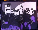 My friend Jackie and I did an art swap. I bought fabric for a skirt she’d make; she bought a canvas for some art I’d make. Jackie is moving from LA to Portland. She requested something black and white with pops of color. She also wanted the painting to remind her of LA.