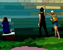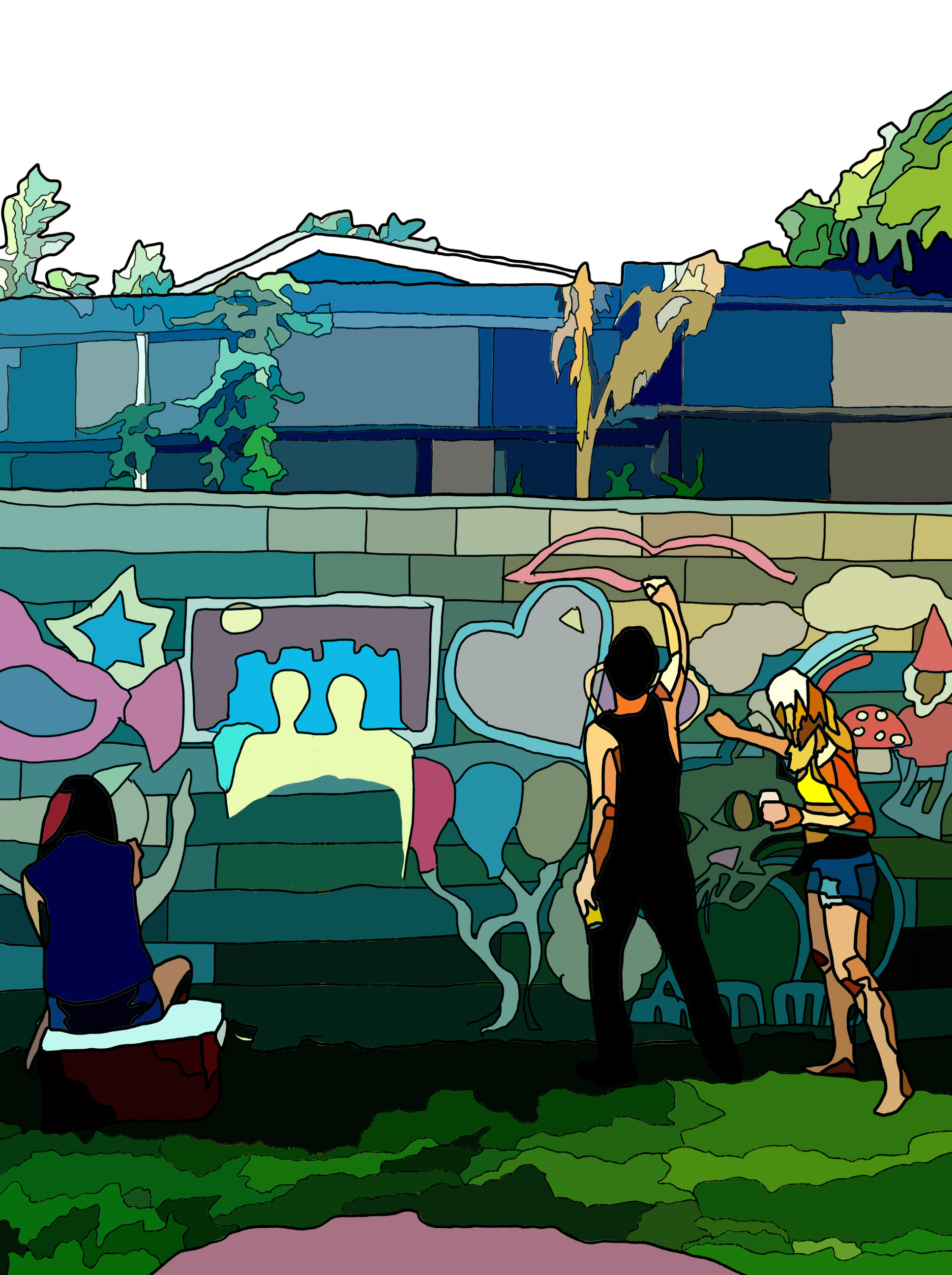 Nice stuff. You do a really good job of blending the people into the style of the background and graffiti.