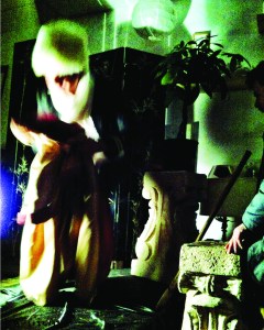 A young man dressed kind of like George Washington getting ready for his life drawing pose