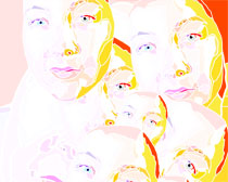 This one has different sizes of the portrait arranged over a color pattern that corresponds to the edges of the face.