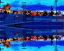 Here is the 20″x30″ image (without the mirrored effect). I used varying opacities to create the illusion of the fence. This is a weird parking lot because it rises above the street on this back side.