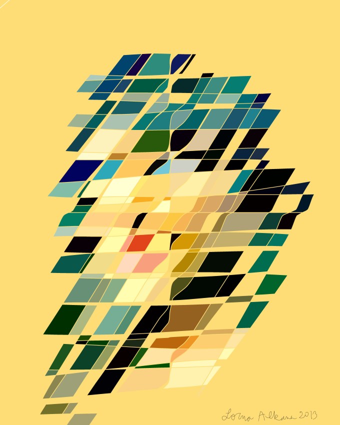 Tera is a dear friend of mine. I made this portrait of her in the style of Mona, Portrait and Lines to Shapes, Self Portrait for an all women exhibit at The Mezz (inside The Alexandria Hotel) during this week’s art walk in Downtown LA. She will join the other two portraits I mentioned, as well as five more of my digital drawings of women.