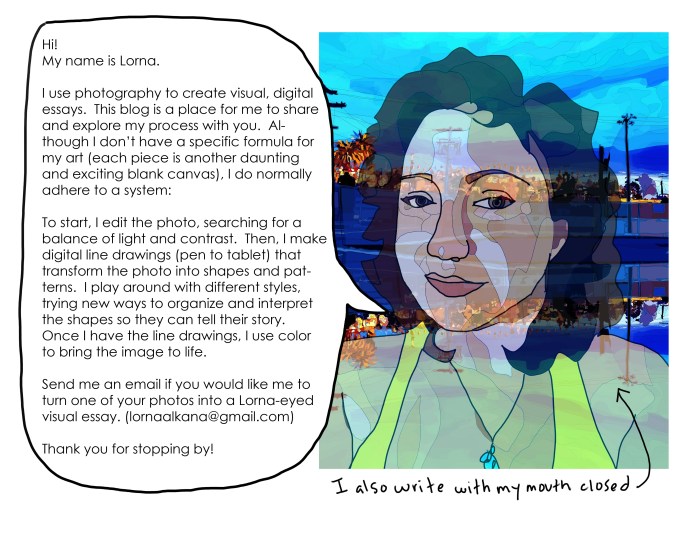 Writing auto-bio blurbs is an interesting challenge. In the D[i]sclosure section of my blog I pile my updated info on top of the old. I started publishing my art and writing on WordPress because I wanted to share my journey of becoming an autobiographical comic writer. I’m not sure if what I’m doing is headed in that direction anymore. Although I seem to be focusing more on drawing than words* these days, the Disclosure page of my blog has turned into a mini scroll-book of Lorna auto-bio comics. So there’s that.