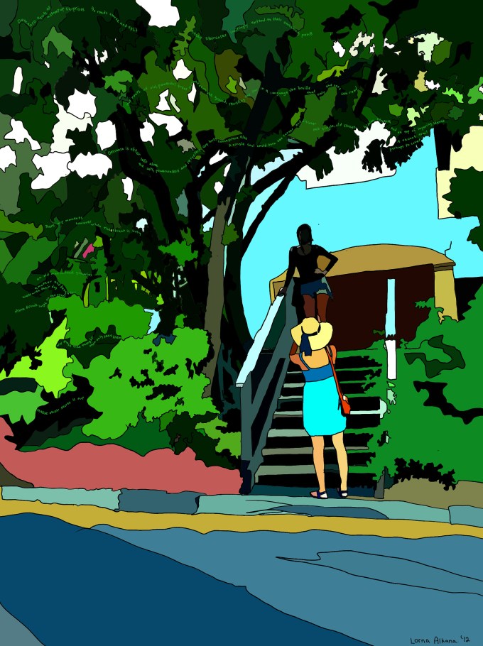 Descanso exists as a street of surprises. Its roads curve and split. The roots of old, powerful trees transform the ground, rewriting its tar into a language like braille, which only cars can read. Steep staircases invitingly extend to their vanishing points.