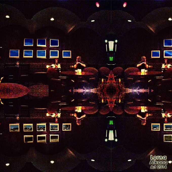 I cut out the oil paintings of landscapes and put in a few variations of the same Seal Beach sky.