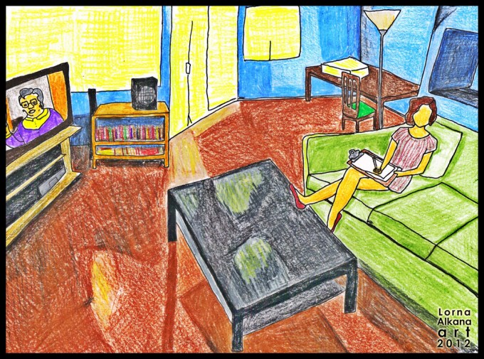 There were some bottles and a bag of pretzel chips on the table that I didn’t draw. That and a whole bunch of other reasons are why the shadows and shading are messed up…but no disclaimers…or ellipses…