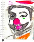 On Saturday, I continued my watercolor word search portraits at the Party Punx event, “The Big Top“, at The Airliner Nightclub in Los Angeles. The process is getting increasingly streamlined the more I practice. I tend to complicate things, especially when it comes to art decisions. I’ll take you through it (with pictures!)