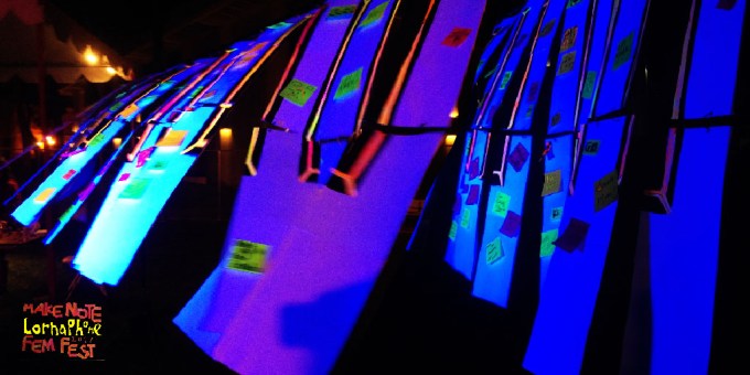 USC’s FemFest 2017 went down on Saturday, April 8 from 5PM – 11:30PM. I showed up at noon with my friend Sierra and a car full of installation. Sierra and I met ten years ago at an Americorps summer volunteer program in New Orleans. Though we hadn’t seen each other since then, (she has bopped around the country and was just visiting for the weekend) our rapport was seamless. She was game to help bring the “Make Note” installation to life.
