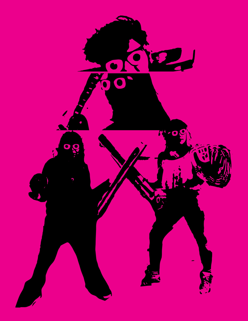 I’m playing around all over digital editing workspace places while working on these #newallamerican baseball cards. I use Photoshop Mix on me iPad to cut out the figures. I trace them into silhouettes in Illustrator on me computer, and then I make collages with them and mess with transparencies in InDesign.