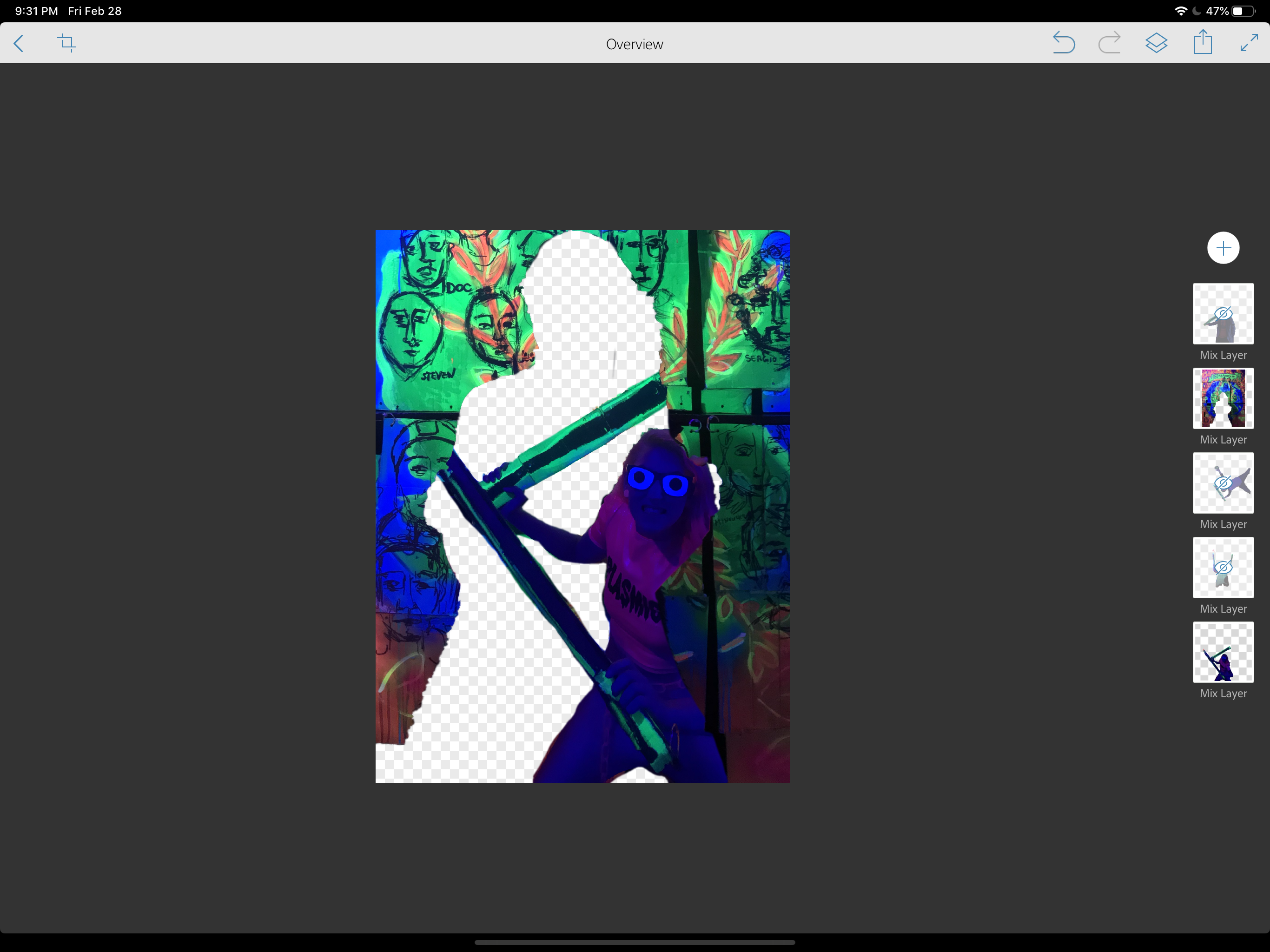 As far as the Photoshop Mix goes, I had to decide to kill my darlings of the mural background I painted and commit to the wonderful people to posed in front of it.