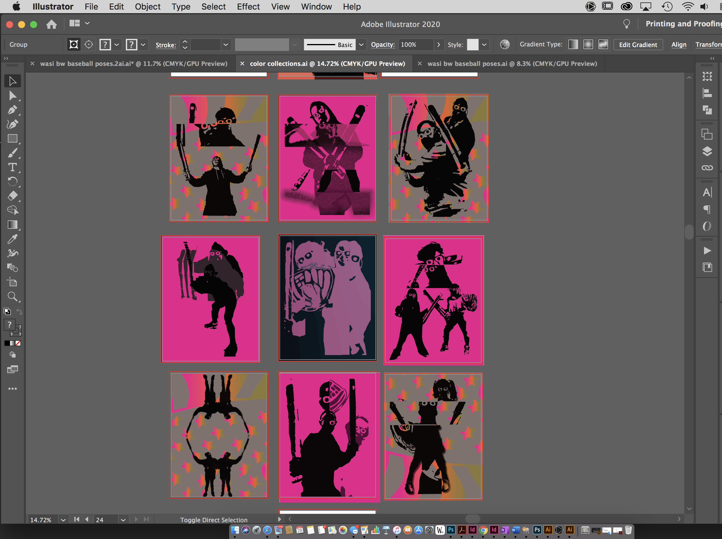 I brought these figures into Illustrator to turn them into silhouette action figures.