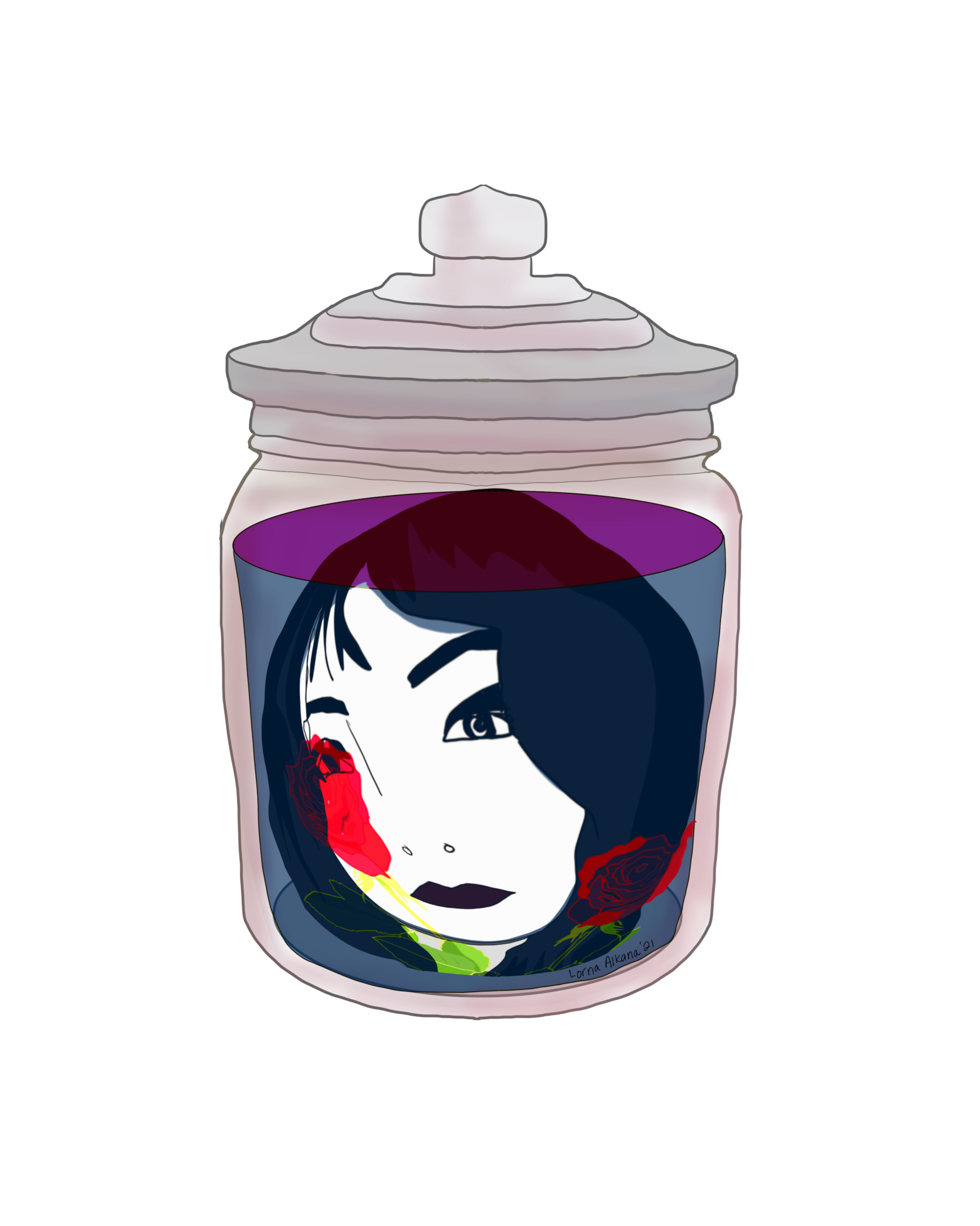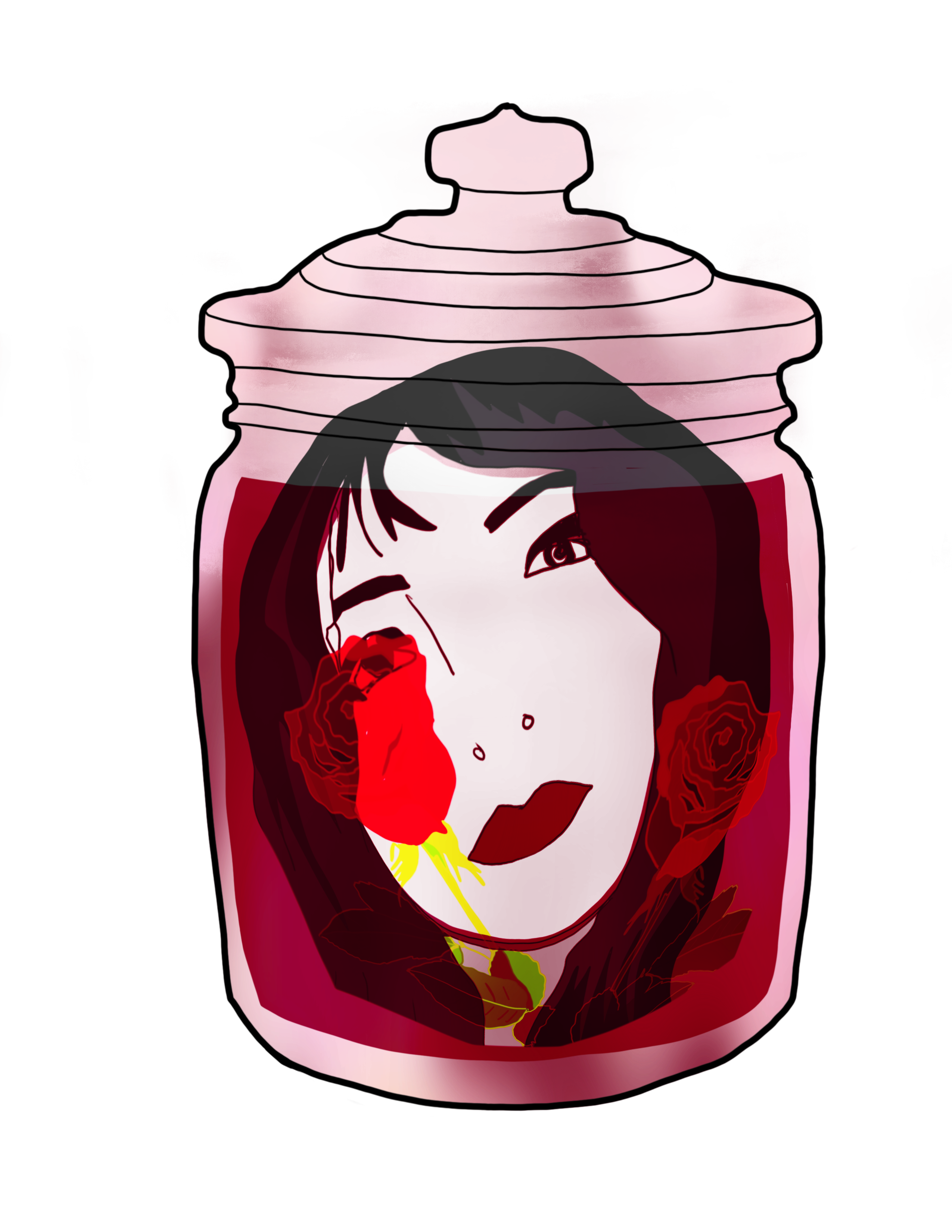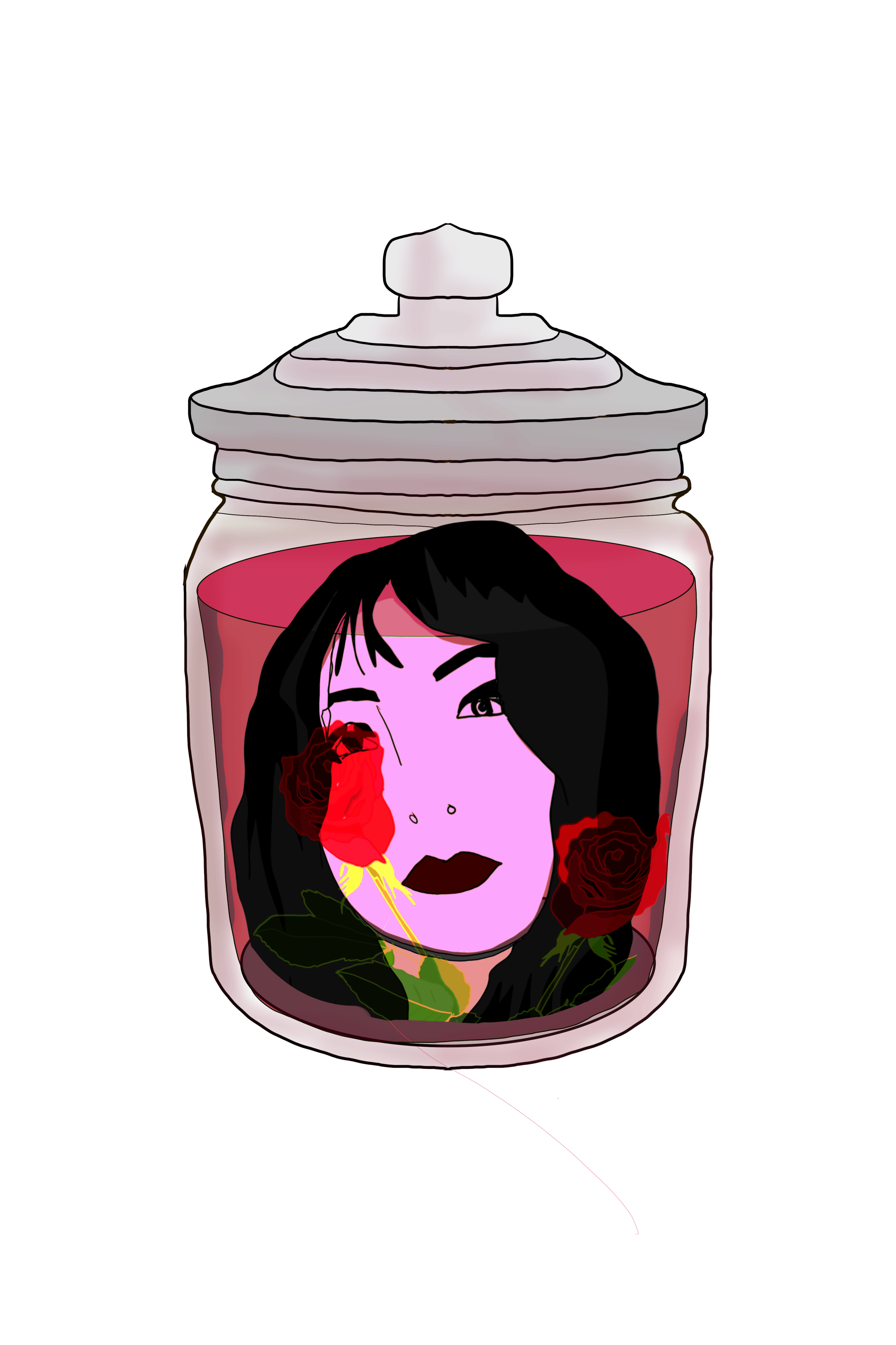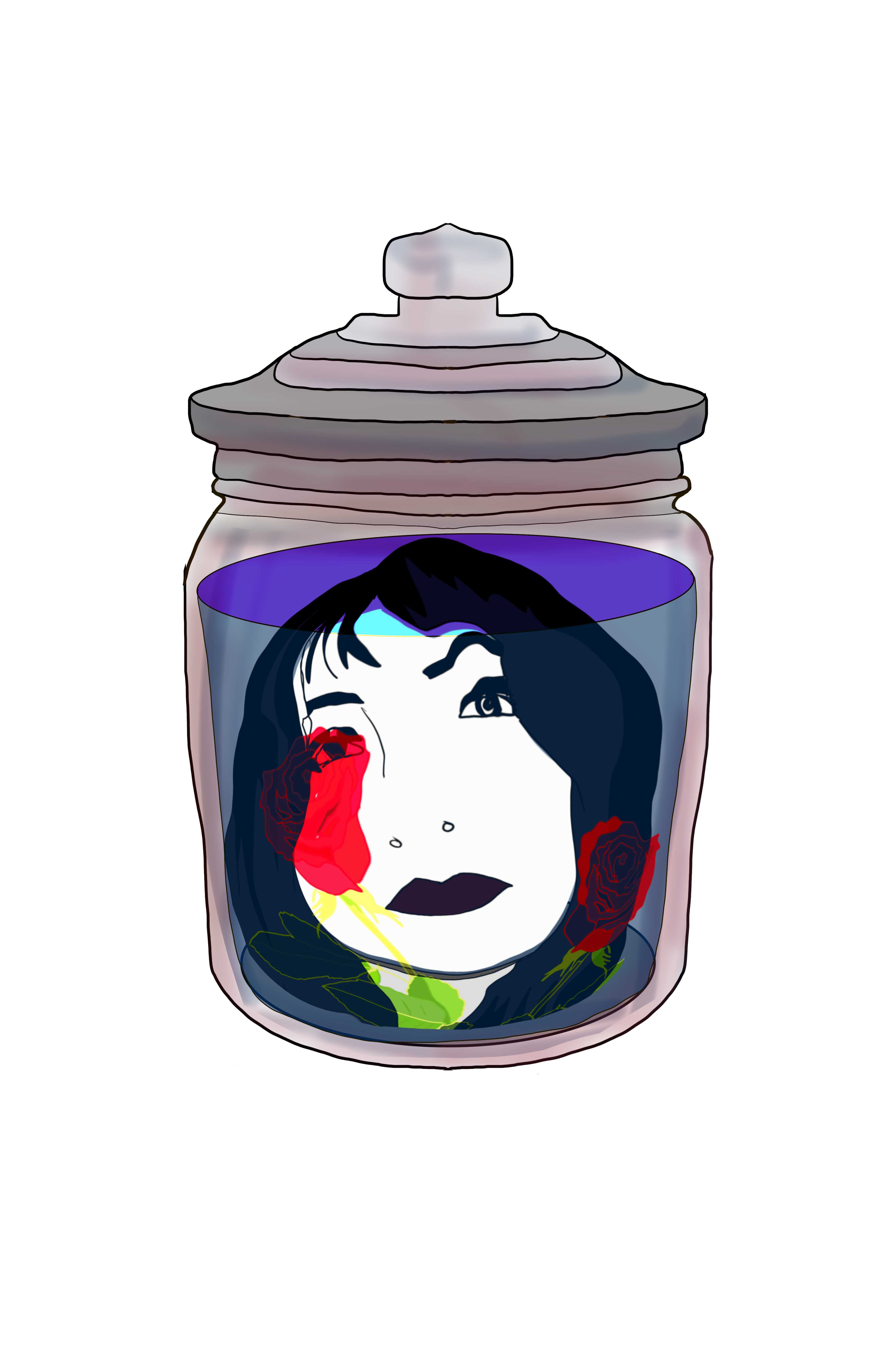 I spent way too much time getting the angle of the jar right and thinking about how liquid would fill it and how a head would fit inside of it. I did some interesting internet searches for examples…