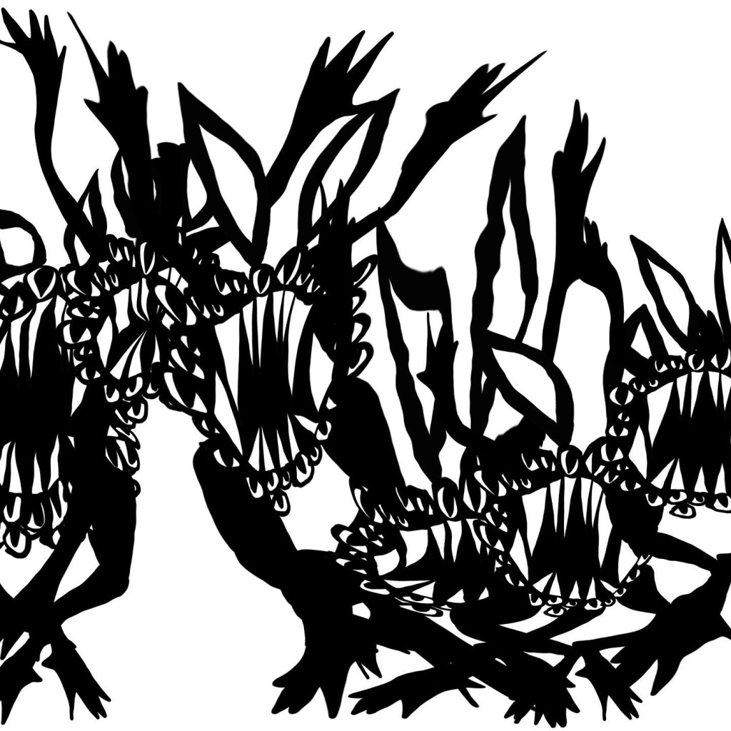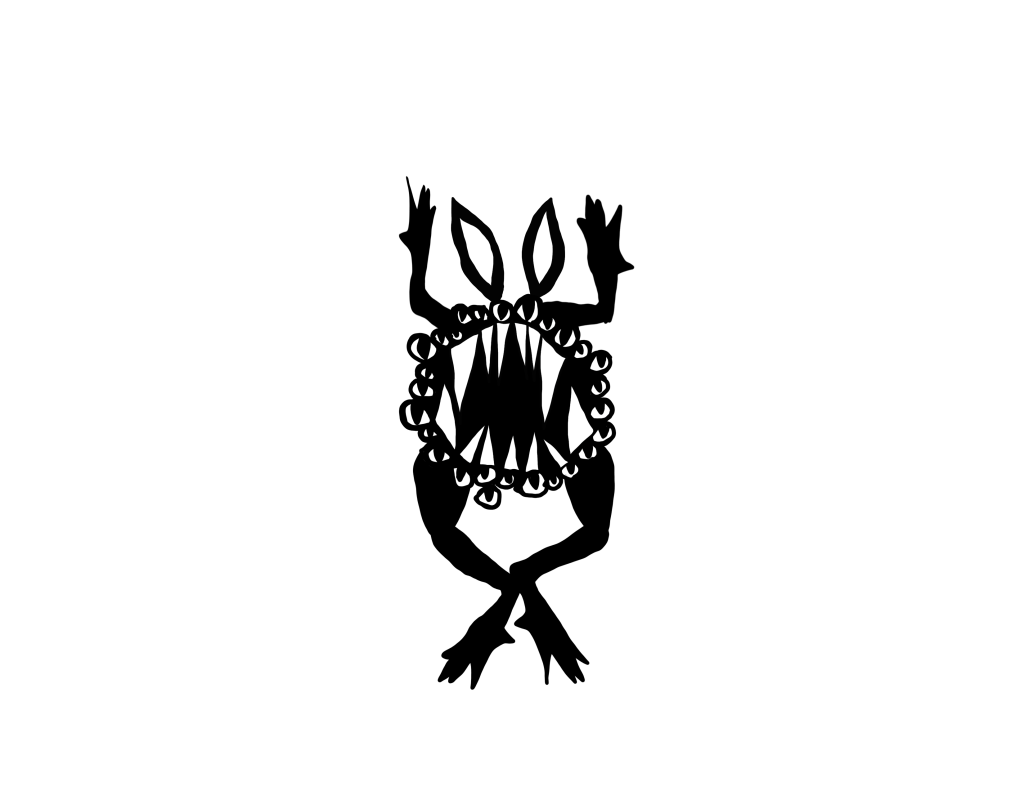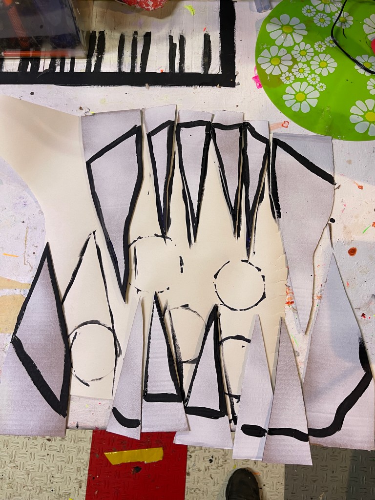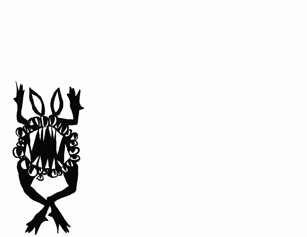 I doodled an idea, turned it into a cardboard wreath, then drew that wreath into a hopping, animated monster. Here’s a bit of this creepy, [re]cycle of life.